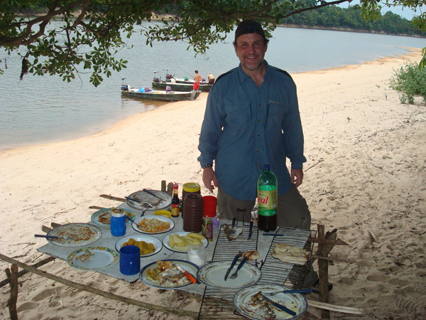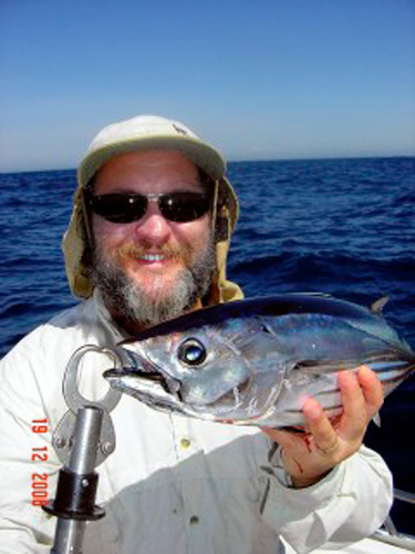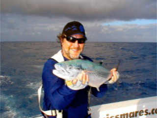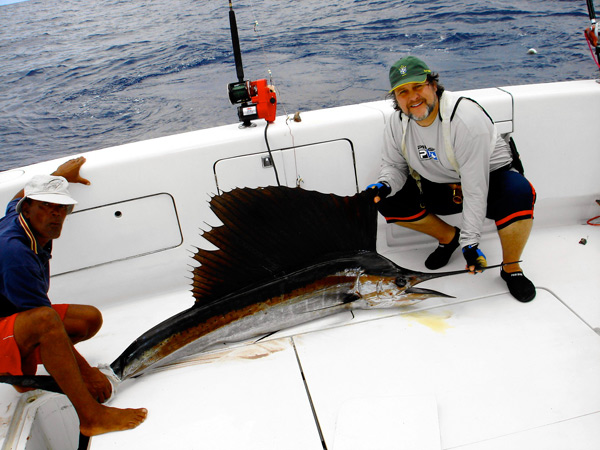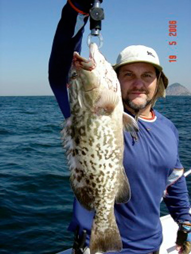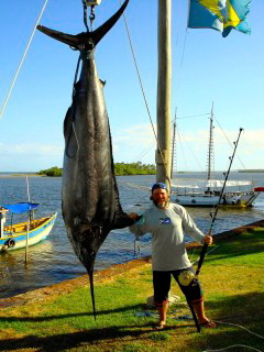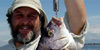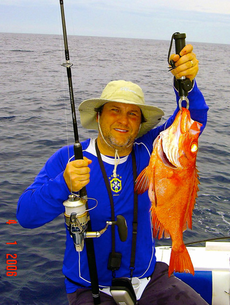 Calloni pescando com o amigo Harry Adler na lancha Ema
